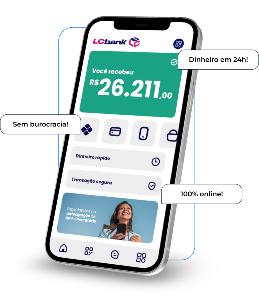Com o LCbank você sai da espera da justiça e tem acesso rápido ao seu dinheiro.